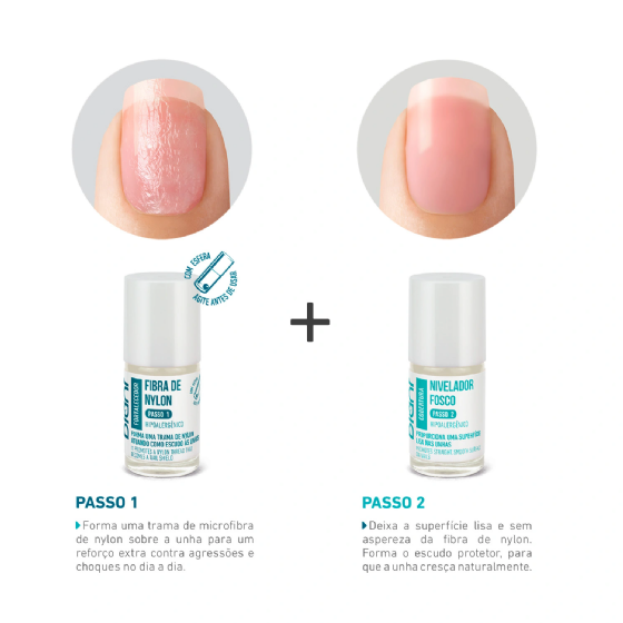 Forma uma fina camada fortificante que promove resistência através de uma trama de nylon, na qual protege a unha de qualquer agressão e choque, evitando quebras e descamações.