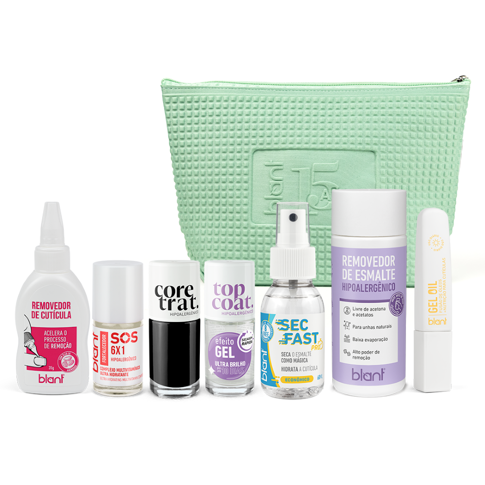 O Kit Esmaltação Perfeita reúne tudo o que você precisa para preparar, tratar e finalizar suas unhas com carinho, tecnologia e resultados profissionais - sempre com o toque de inovação que só a Blant entrega.