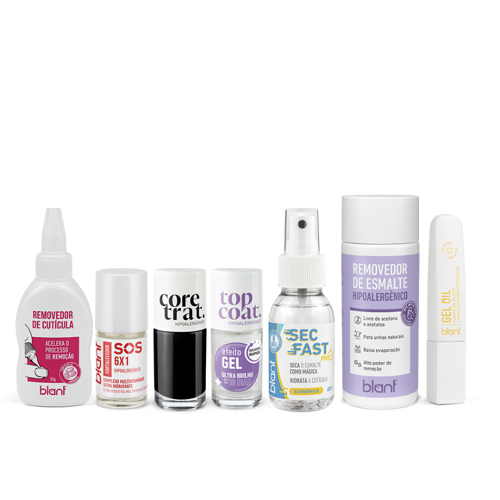 O Kit Esmaltação Perfeita reúne tudo o que você precisa para preparar, tratar e finalizar suas unhas com carinho, tecnologia e resultados profissionais - sempre com o toque de inovação que só a Blant entrega.
