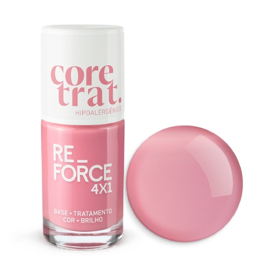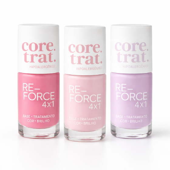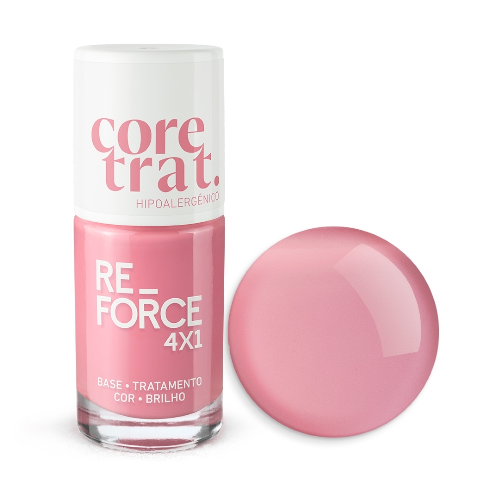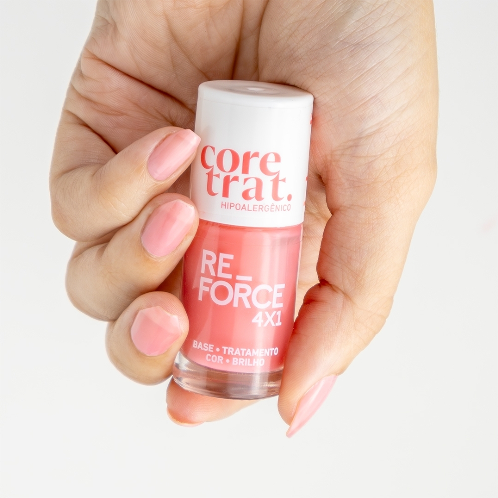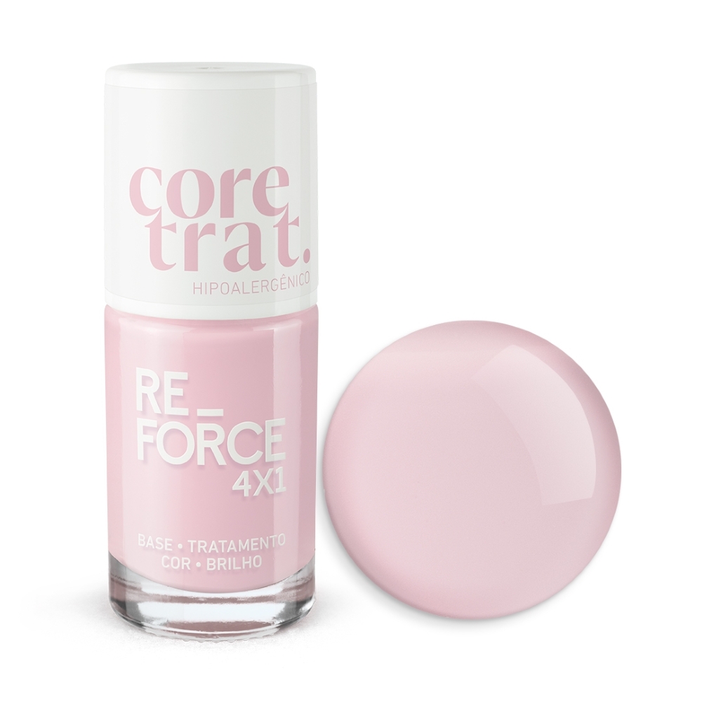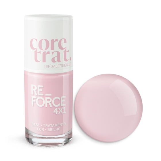 Muito mais que esmalte, o Re-Force 4x1 entrega base, tratamento, cor e brilho em um só produto. Seu acabamento translúcido valoriza a beleza natural das unhas com um toque clean, moderno e sofisticado, enquanto sua fórmula atua profundamente fortalecendo e restaurando a estrutura da unha.