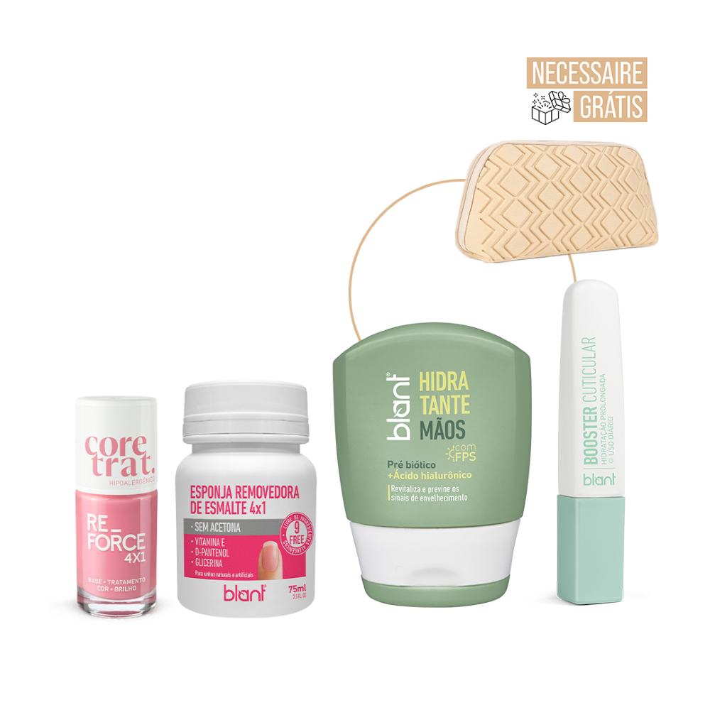 Com uma necessaire elegante e compacta, o kit reúne produtos essenciais para manter suas unhas sempre limpas, protegidas, hidratadas e com aquele toque de brilho que faz toda a diferença no visual. É aquele tipo de kit coringa que não pode faltar na bolsa, na mochila ou na mala.