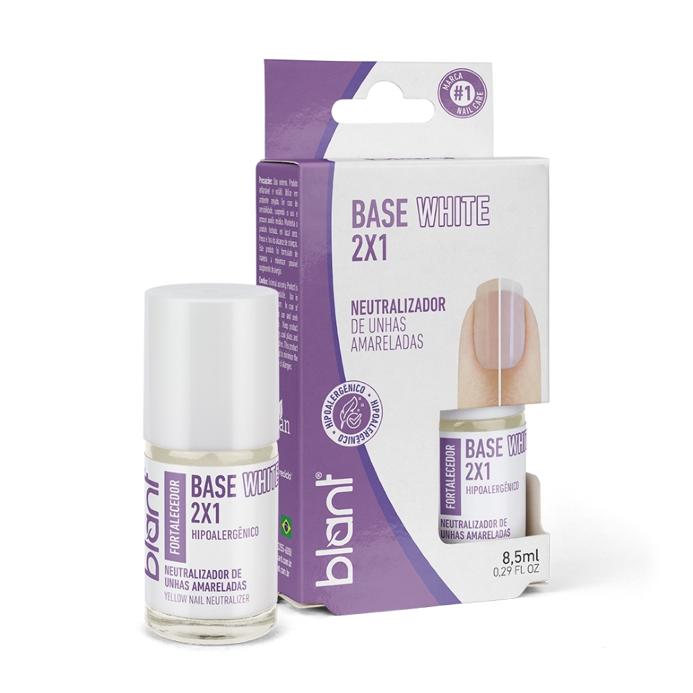 A Base White 2x1 chega exatamente para isso. Uma combinação inteligente entre base e top coat, que corrige imperfeições com efeito ótico imediato, fortalece a estrutura da unha e ainda garante um acabamento neon quando usado como finalizador.